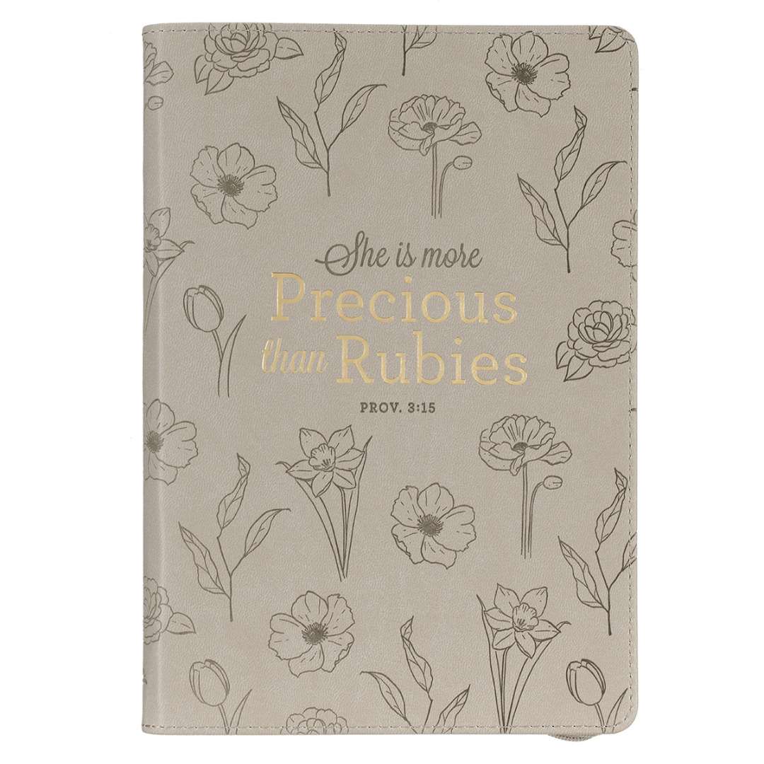 Set some time apart to journal your thoughts and prayers in this She is More Precious Than Rubies Faux Leather Journal With Zipped Closure