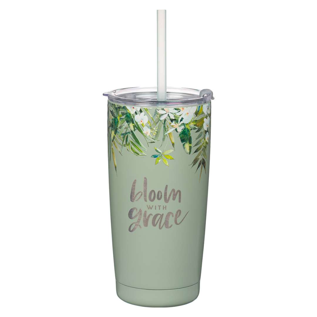 Make a statement of faith using the Bloom With Grace Stainless Steel Travel Mug as you move throughout your busy day.